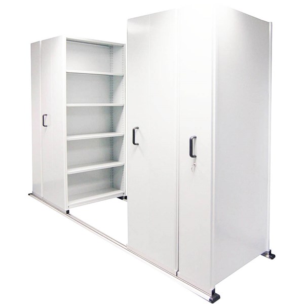 - This shelving system is not secured to the floor, allowing the mobile shelving system to be easily moved to suit the changing office environment