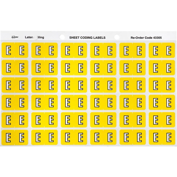 AVERY 43305 LATERAL FILE LABEL SIDE TAB COLOUR CODE E 25 X 38MM YELLOW PACK 180