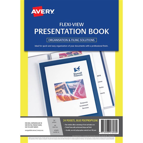 AVERY 47693 FLEXIVIEW PRESENTATION BOOK 24 POCKET BLUE