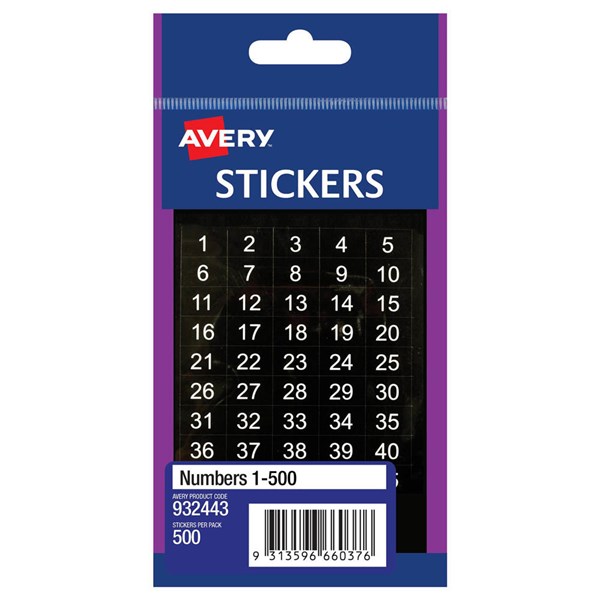 - 14 x 9mm numbers from 1-500, printed white on a black background, and with resealable packs of 500 labels the convenience goes on and on