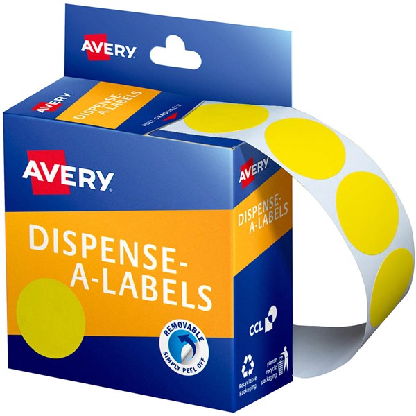 AVERY 937247 ROUND LABEL DISPENSER 24MM YELLOW BOX 500