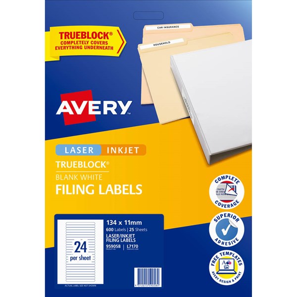 AVERY 959058 L7170 TRUEBLOCK FILING LABELS LASER/INKJET 24UP WHITE PACK 25