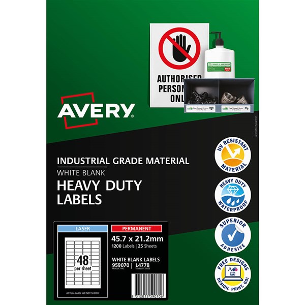 - Avery Heavy Duty Labels are great for property labelling as they are more durable than standard paper labels
