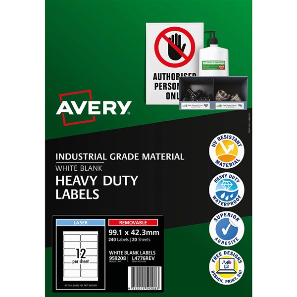 AVERY 959208 REMOVABLE HEAVY-DUTY LABELS 99.1 X 42.3MM WHITE PACK 20