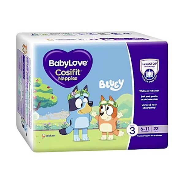 Babylove Cosifit Convenience Nappies are designed for crawling babies, offering a comfortable and secure fit that moves with your little one - Each pack contains 22 nappies, providing reliable absorbency and leak protection to keep your baby dry and happy throughout the day