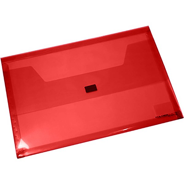 BANTEX TRANSLUCENT DOCUMENT WALLET POP GEAR PP HOOK AND LOOP CLOSURE FOOLSCAP RED