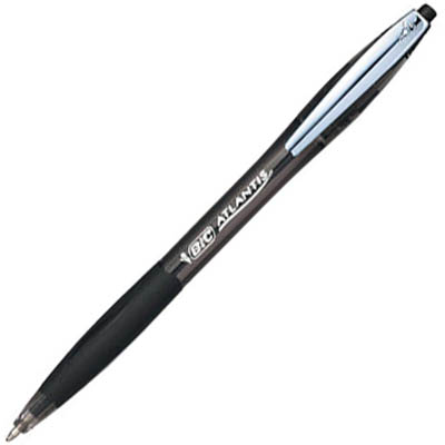 BIC Atlantis Retractable Ballpoint Pens feature a metal clip so you can attach your pen to your clothes, preventing it from going missing - Contoured barrel and soft grip for your comfort and control, as well as a retractable nib to keep it protected when not in use