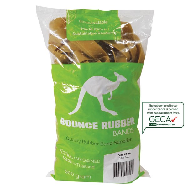 - GECA Claim Authenticated: The rubber used in Bounce Rubber bands is derived from natural rubber trees