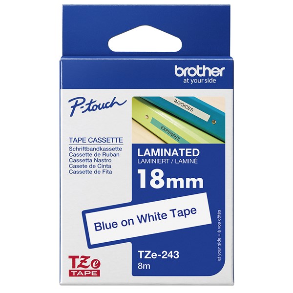 BROTHER TZE-243 LAMINATED LABELLING TAPE 18MM BLUE ON WHITE