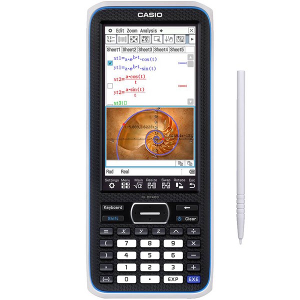 - Touch-panel operation by stylus or finger - The fx-CP400 offers intuitive stylus touch-panel operation that eliminates complicated key operations. Graphically display mathematical formulas by simply dragging and droppingthem into the graph area