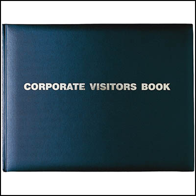 Black, section sewn, gold blocked - Featuring date, arrived AM/PM, visitors name, company represented, person visited and departed AM/PM