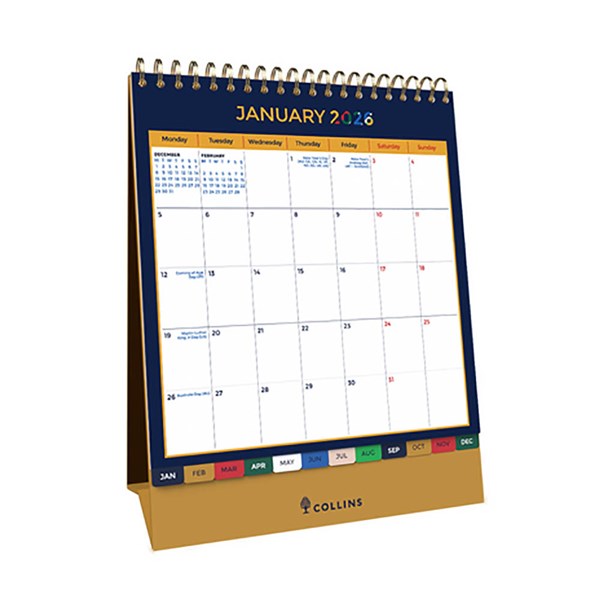 Turn your desk into an inspiring space with these desk calendars - Featuring a 12-month calendar with tabs, international holidays and elegant silver/ gold ring binding, bringing the right work/life balance to your home or workplace
