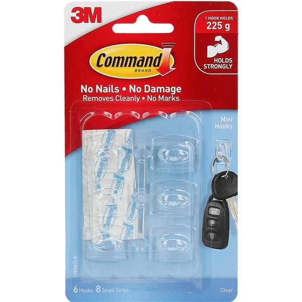 COMMAND ADHESIVE MINI CLEAR HOOKS WITH CLEAR STRIPS