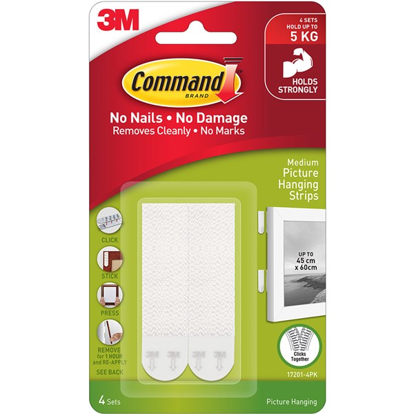 Command picture hanging strips make decorating quick and easy. One click tells you picture hanging strips are locked in and holding tight. Best of all, when you are ready to take down or move your pictures, they come off cleanly - Damage-free hanging
