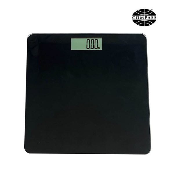 The Compass Bathroom Scale combines modern design with reliable performance, making it a perfect addition to any home - Its black finish and compact 28 x 28 cm size allow it to fit seamlessly into any bathroom space