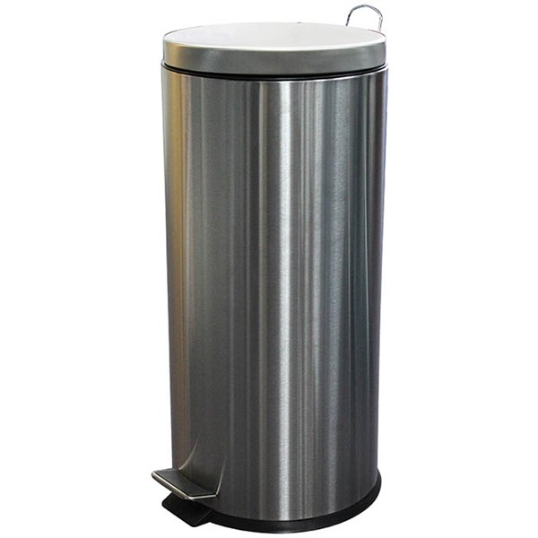 COMPASS GARBAGE PEDAL BIN ROUND 30 LITRE SILVER