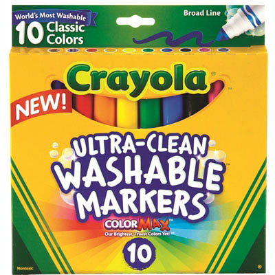 CRAYOLA ULTRA-CLEAN WASHABLE MARKERS BROAD CLASSIC COLORS PACK 10