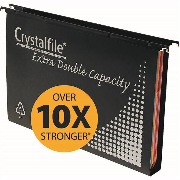CRYSTALFILE EXTRA SUSPENSION FILES DOUBLE CAPACITY 30MM PP FOOLSCAP BLACK BOX 10