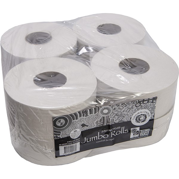 Cultural Choice Recycled Jumbo Toilet Roll - Cultural Choice is a 100% Indigenous, privately owned and operated company, $0.10 from every product sold goes to the Cultural Choice Association, a Public Benevolent Institution set up to raise funds and to support the investigation of causes and prevention of Aboriginal Youth suicide in Australia