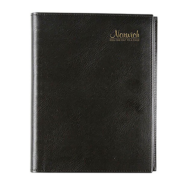 The Cumberland Norwich diary is for those who prefer a spiral bound diary - Featuring a stylish, flexible leathergrain cover, finished with the famous gold foil 'Norwich' logo and fine ivory paper