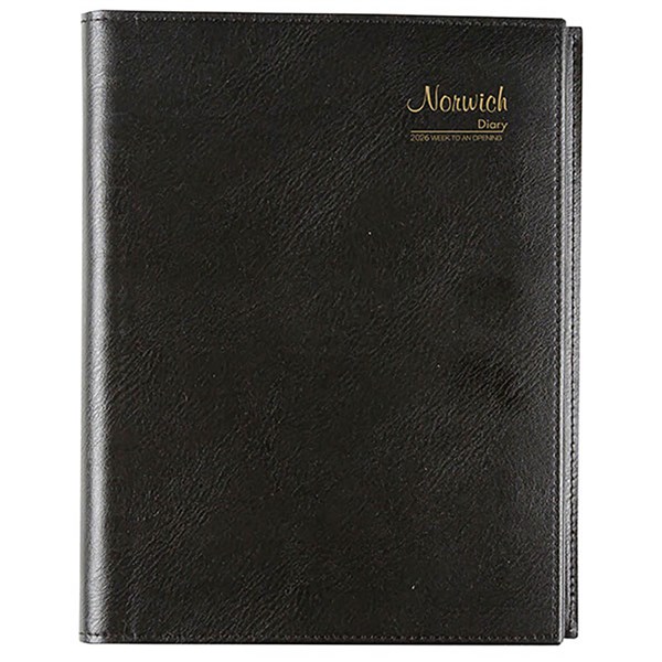 The Cumberland Norwich diary is for those who prefer a spiral bound diary - Featuring a stylish, flexible leathergrain cover, finished with the famous gold foil 'Norwich' logo and fine ivory paper