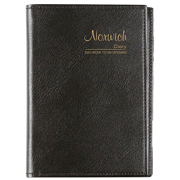 The Cumberland Norwich diary is for those who prefer a spiral bound diary - Featuring a stylish, flexible leathergrain cover, finished with the famous gold foil 'Norwich' logo and fine ivory paper
