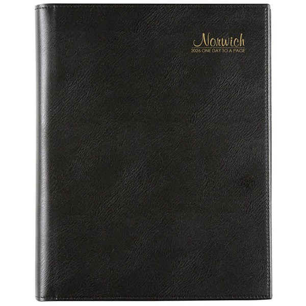 The Cumberland Norwich diary is for those who prefer a spiral bound diary - Featuring a stylish, flexible leathergrain cover, finished with the famous gold foil 'Norwich' logo and fine ivory paper