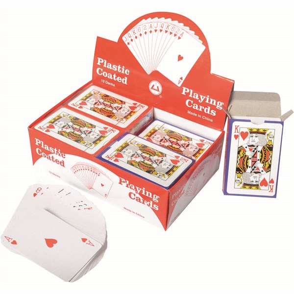 - Retail display pack containing 12 decks of red and 12 decks of blue