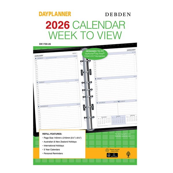 Debden offers an extensive range of organiser refills, printed in two colours on quality white paper - All Debden DayPlanner refills have universal hole punching to fit most organisers