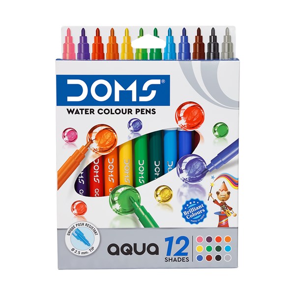 DOMS AQUA WATERCOLOUR COLOURED FINE TIP MARKERS PACK 12