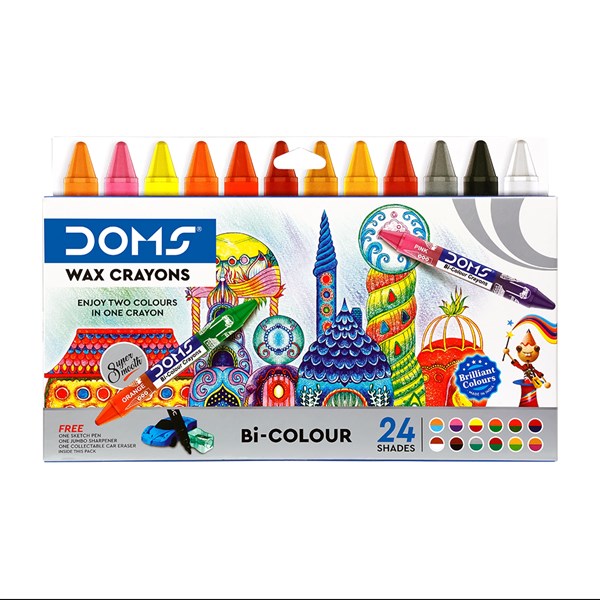 DOMS BI-COLOUR JUMBO WAX CRAYONS 12 PCS (24 COLOURS)