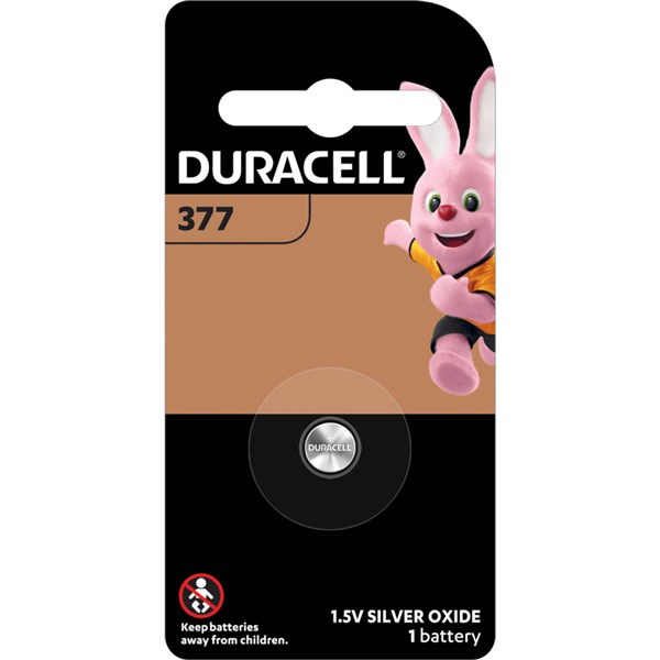 Duracell Specialty 377 Button Silver Oxide batteries are made for reliable, long-lasting power for your specialty devices - They have up to 3 years of in-storage guarantee so you can be confident these Silver Oxide Button batteries will be ready when you need them