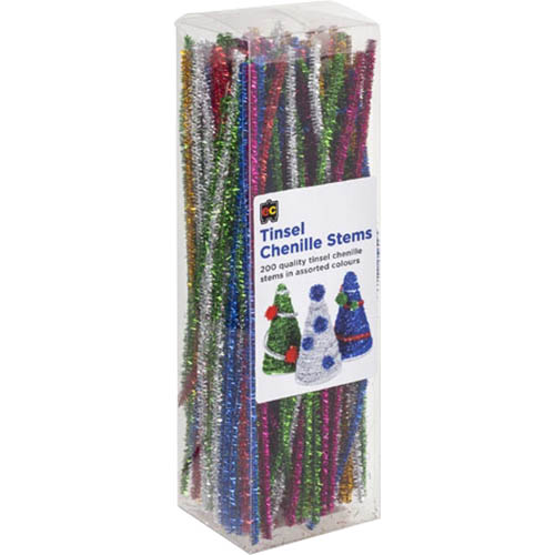 EDUCATIONAL COLOURS CHENILLE STEMS 300MM ASSORTED TINSEL PACK 200