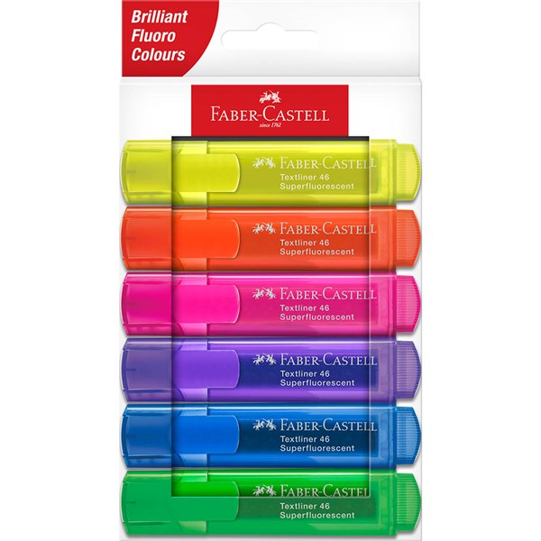 Faber-Castell Textliners contain a versatile tip allowing you to mark in 3 line widths, depending on the angle you hold the pen - Textliners contain a water-based, super fluorescent ink making them perfect for use on most papers