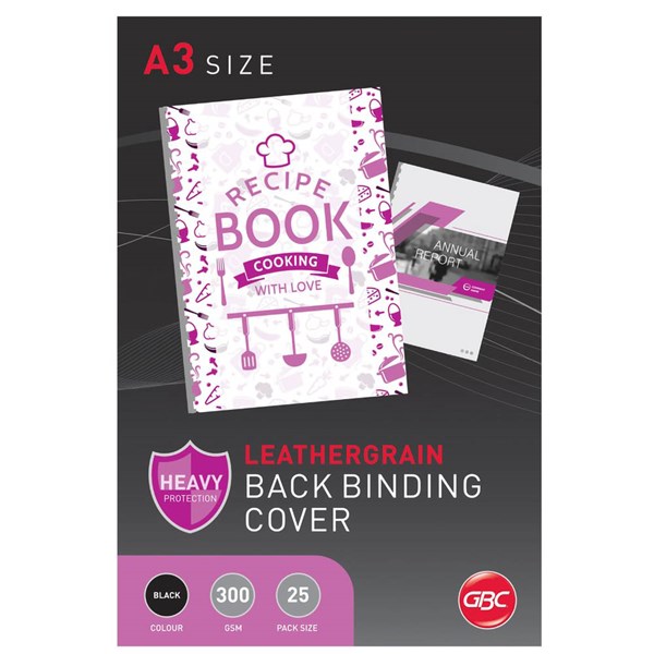 GBC IBICO BINDING COVER LEATHERGRAIN 300GSM A3 BLACK PACK 25