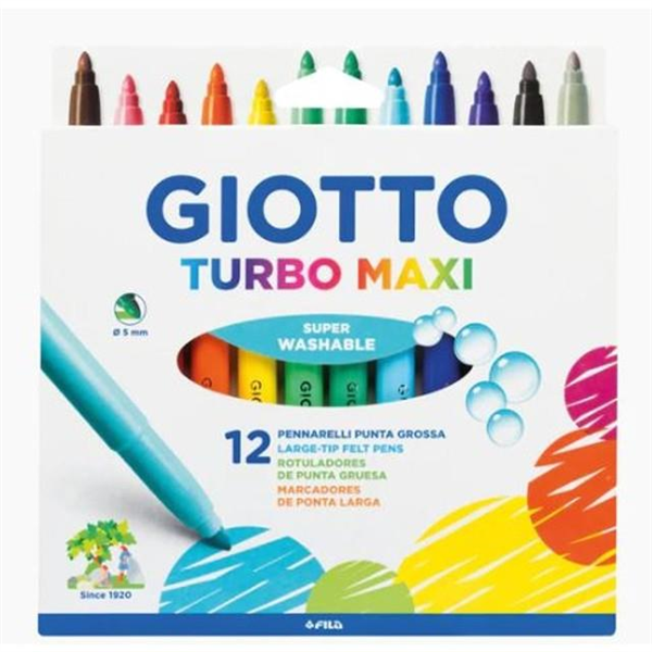 GIOTTO BROAD TIP MARKERS 12 ASSORTED TURBO MAXI