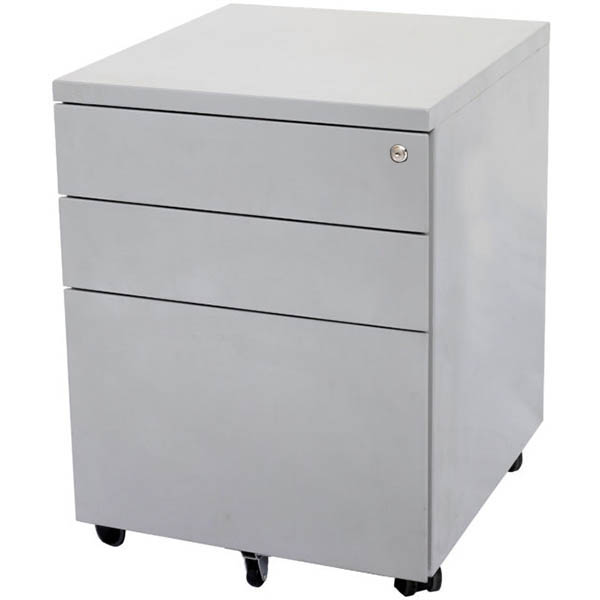 GO STEEL MOBILE PEDESTAL STEEL 3-DRAWER LOCKABLE 460 X 472 X 610MM PRECIOUS SILVER