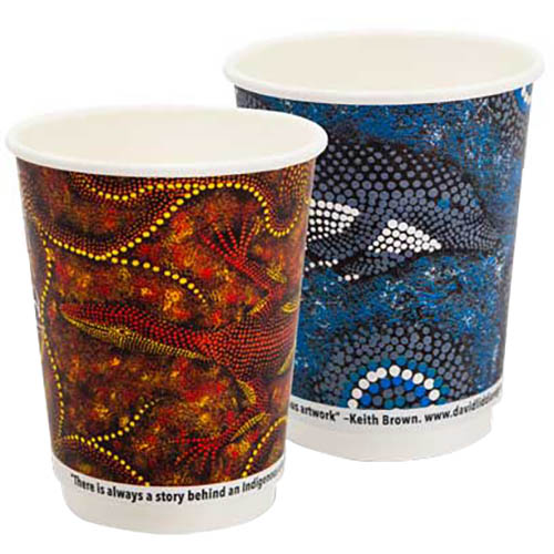 Huhtamaki have partnered with CorporateConnect.AB, who is committed to closing the gap in Indigenous disadvantage, to develop a new range of coffee cups - The cups feature artwork by Keith Brown