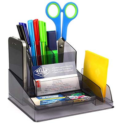 - Multi compartments can store pens and pencils, scissors, ruler, paper clips, business cards, mobile phone, Post It Notes, letters, CDs etc