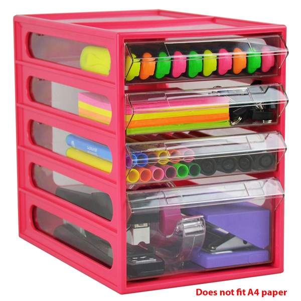 ITALPLAST OFFICE ORGANISER CABINET 4 DRAWER 255D X 165W X 230H MM WATERMELON