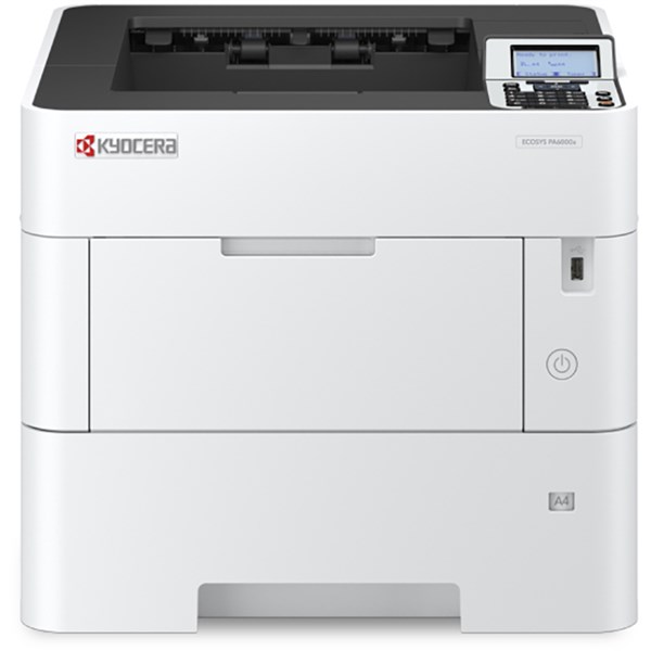 The ECOSYS PA6000x delivers an exceptional high-speed printing of up to 60 pages per minute and a first print time of 4.5 seconds, that guarantee efficient and reliable operation in a vibrant professional work environment - The low level of total cost of ownership and intelligent security features provide more than you expect