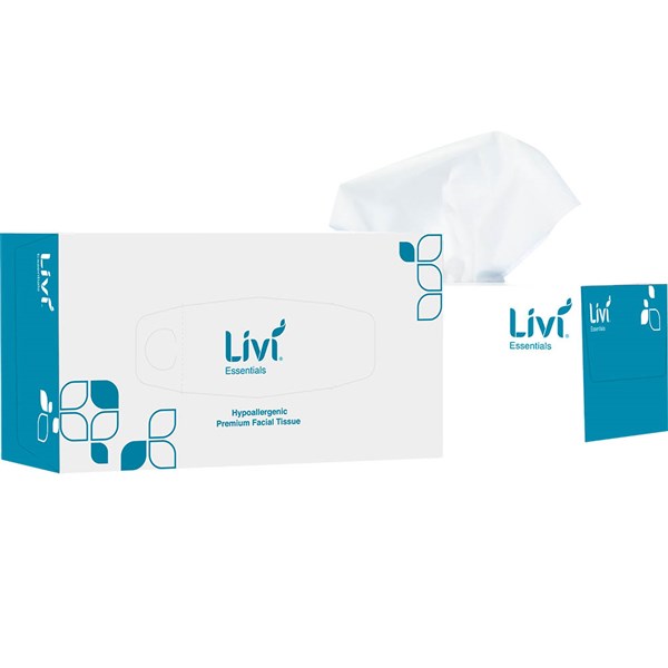 The Livi Essentials 2ply facial tissue delivers a premium soft touch - The facial tissues are made from virgin pulp and are hypoallergenic for sensitive skin