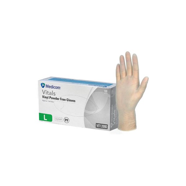 MEDICOM VITALS VINYL POWDER FREE GLOVES CLEAR SMALL PACK 100