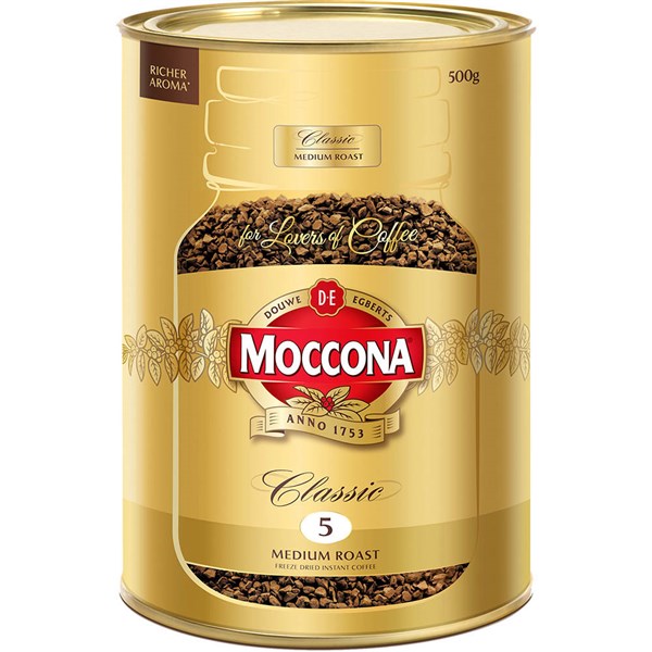 Moccona Classic Medium Roast Instant Coffee delivers a smooth, well-balanced flavour in every cup. Packaged in a convenient 500g resealable tin, it s the perfect choice for stocking your office tea room, workplace kitchen, or home pantry. This medium roast coffee is rich in aroma and ready in moments simply add hot water to enjoy a delicious, full-bodied brew anytime. Whether you're catering to a busy office or just love a quality cup at home, Moccona Medium Roast offers reliable flavour, convenience, and long-lasting freshness.