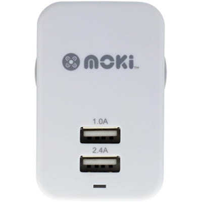 MOKI USB WALL CHARGER DUAL WHITE