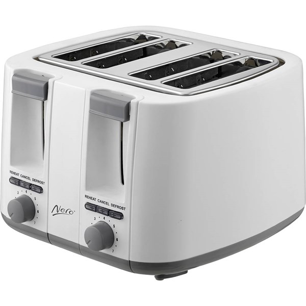 Sleek, modern 4 slice toaster with 7 setting browning dial - Wide toasting slots are ready to receive your favourite breads while hi lift lever allows for easy retrieval of your toasty treat