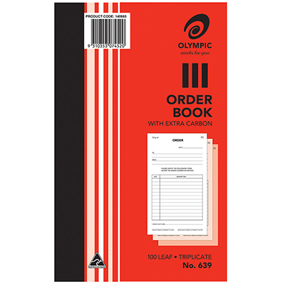 OLYMPIC 639 ORDER BOOK CARBON TRIPLICATE 100 LEAF 200 X 125MM