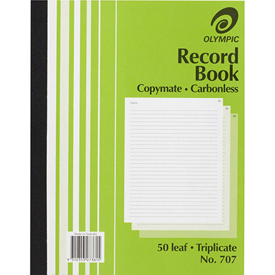 OLYMPIC 707 RECORD BOOK CARBONLESS TRIPLICATE 50 LEAF 250 X 200MM