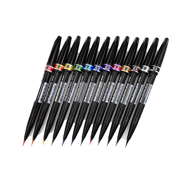 Collection of 12 assorted colours in a convenient wallet - Innovative ultra fine brush pen with vivid dye ink