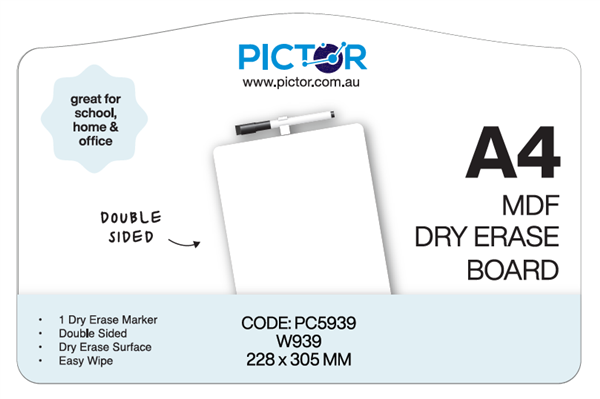 PICTOR DRY ERASE A4 WHITEBOARD MDF DOUBLE SIDED PLAIN W939